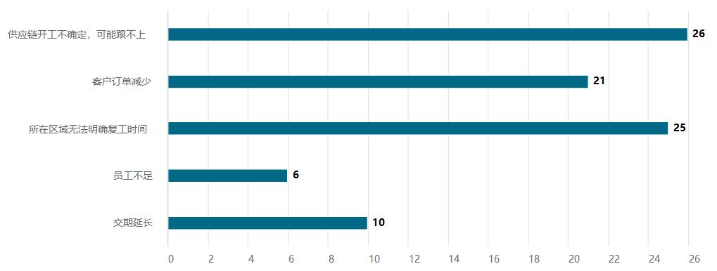 ´Óµ÷ÑÐÇé¿öÀ´¿´£¬¸´¹¤Ê±¼äµÄ²»È·¶¨Ó°Ïì½Ï´ó£º¹©Ó¦Á´¿ª¹¤²»È·¶¨£¬¿ÉÄܸú²»ÉϵÄÓÐ26£¬Õ¼±È53.06%£»¿Í»§¶©µ¥¼õÉÙµÄÓÐ21£¬Õ¼±È42.86%£»ËùÔÚÇøÓòÎÞ·¨Ã÷È·¸´¹¤Ê±¼äµÄÓÐ25£¬Õ¼±È51.02%£»Ô±¹¤²»×ãµÄÓÐ6£¬Õ¼±È12.24%£»½»ÆÚÑÓ³¤µÄÓÐ10£¬Õ¼±È20.41%