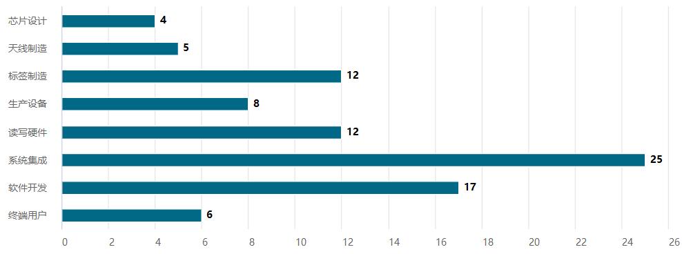 ²ÎÓë´Ë´Îµ÷ÑÐÆóÒµÖУ¬´ÓоƬÉè¼Æµ½ÖÕ¶ËÓû§£¬»ù±¾¸²¸ÇÁËRFIDÈ«²úÒµÁ´£¬ËùÒÔÓÐÒ»¶¨µÄÐÐÒµ´ú±íÐÔ£¬ÆäÖÐоƬÉè¼Æ4¼Ò£»Éæ¼°ÌìÏßÖÆÔì5¼Ò£»Éæ¼°±êÇ©ÖÆÔì12¼Ò£»Éæ¼°Éú²úÉ豸8¼Ò£»Éæ¼°¶ÁдӲ¼þ12¼Ò£»É漰ϵͳ¼¯³É25¼Ò£»Éæ¼°Èí¼þ¿ª·¢17¼Ò£»ÖÕ¶ËÓû§6¼Ò¡£